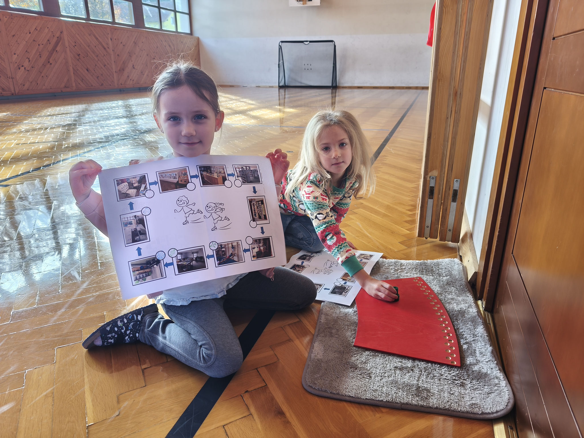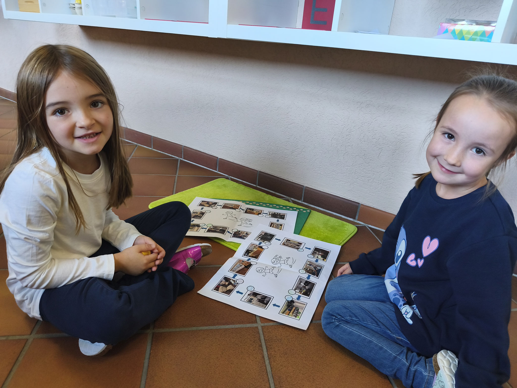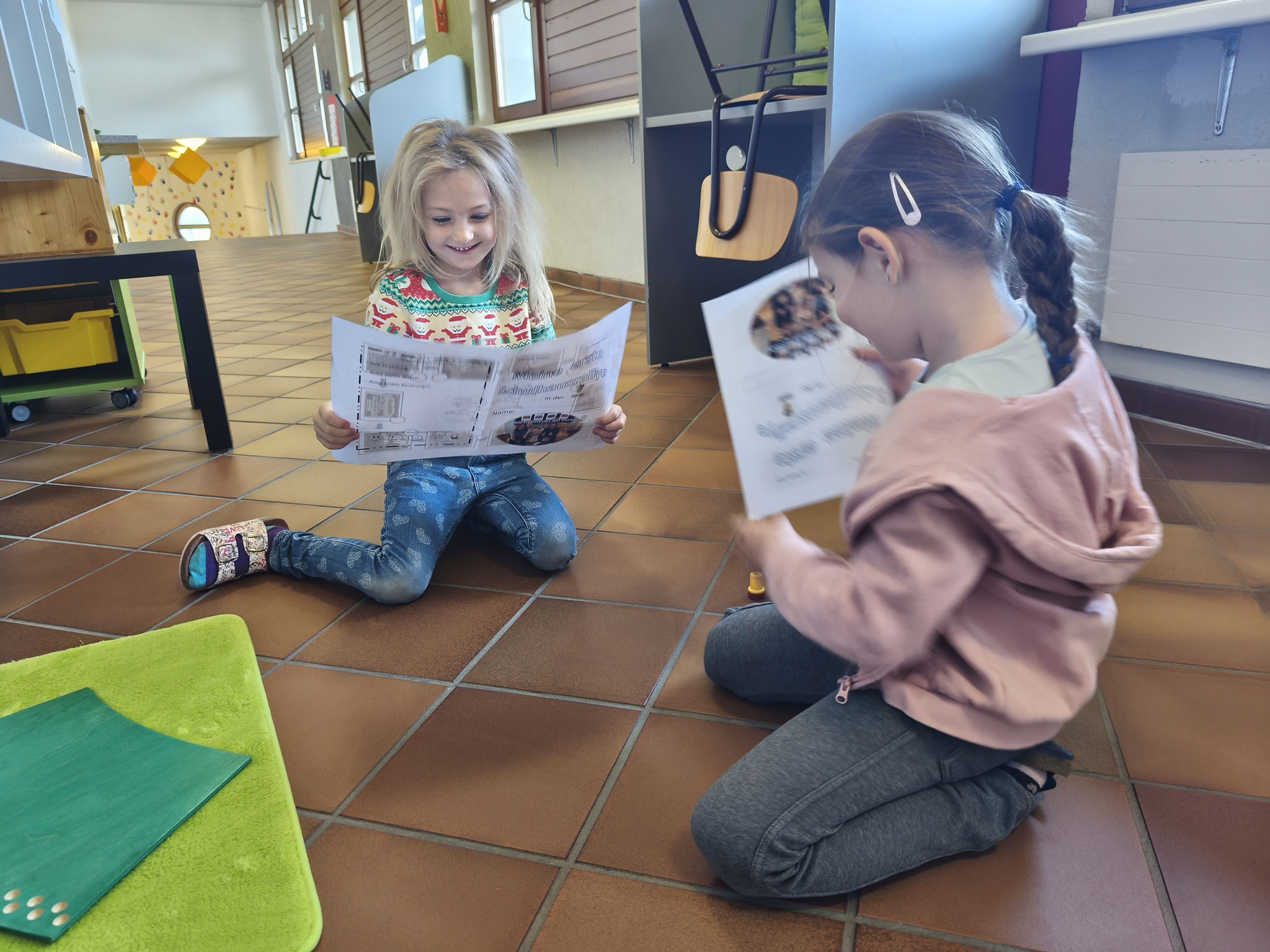 Im Zuge der ersten Nahtstellenbegegnung mit dem Kindergarten durften die acht Schulvorbereitungskinder die Schule bei der Schulhausrallye erkunden. Keine Ecke war bei der Bildersuche vor den neugierigen Kinderaugen sicher.