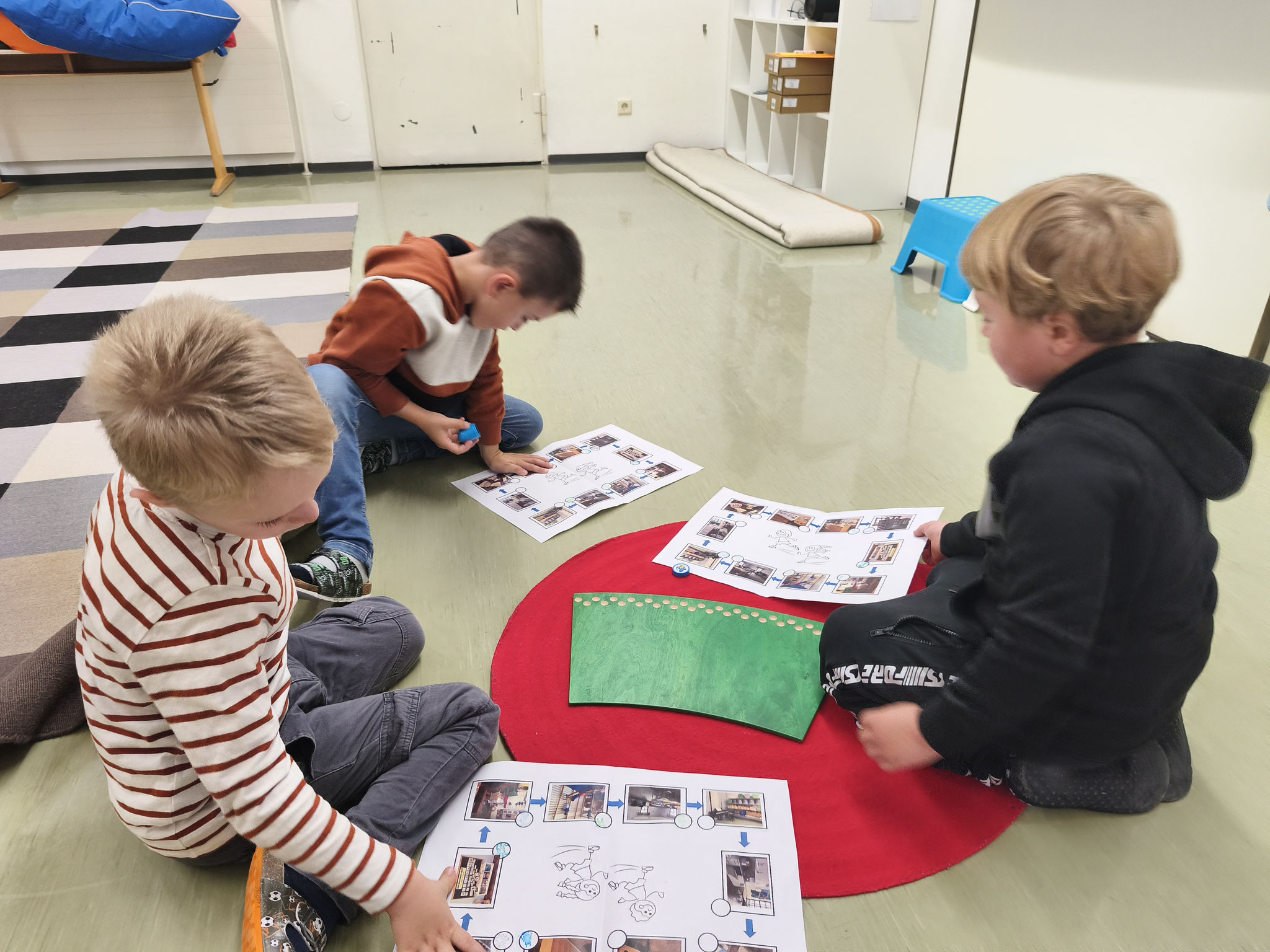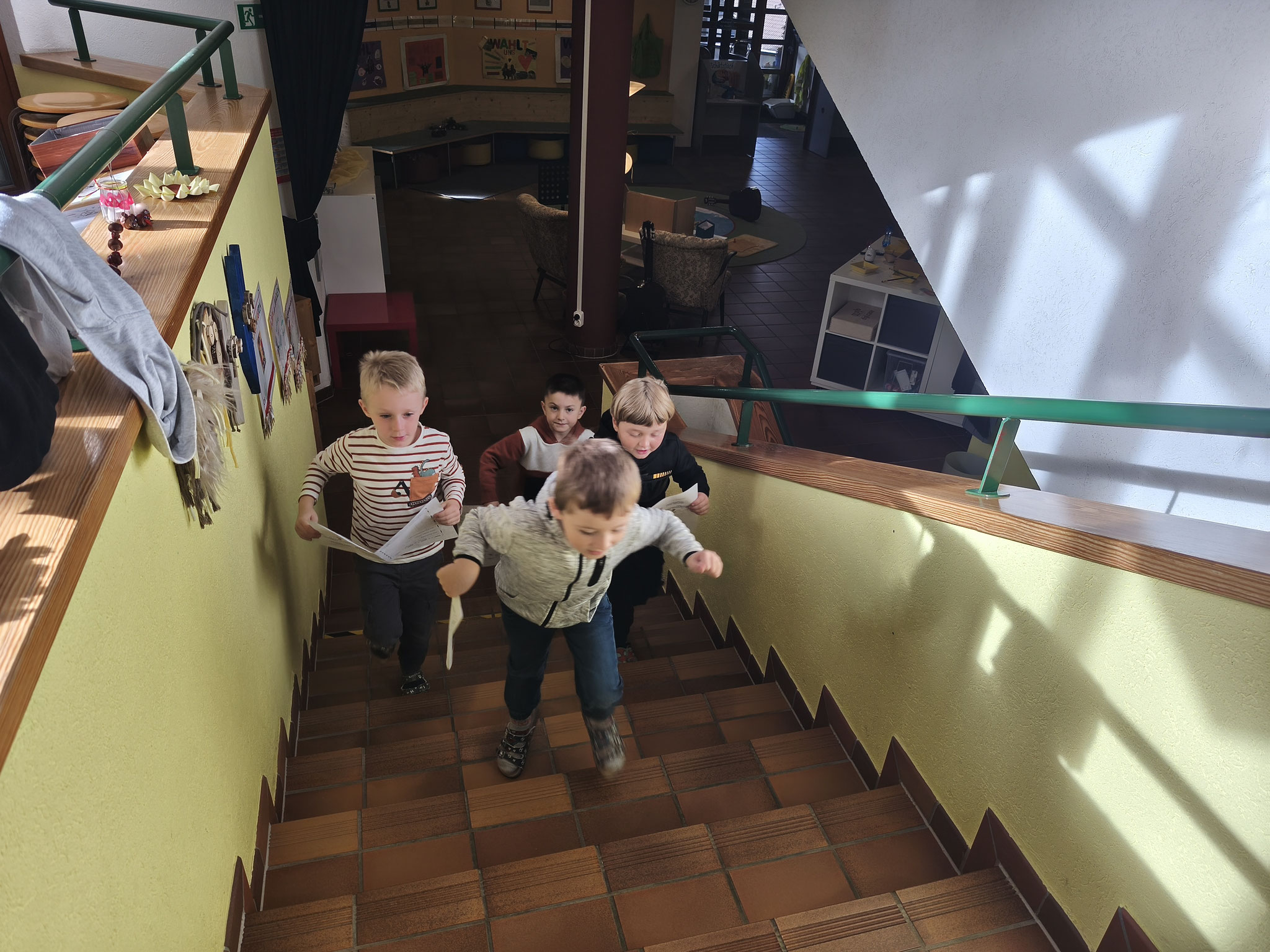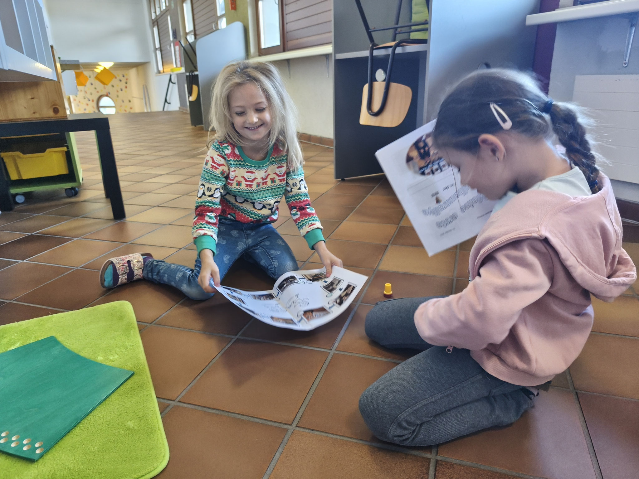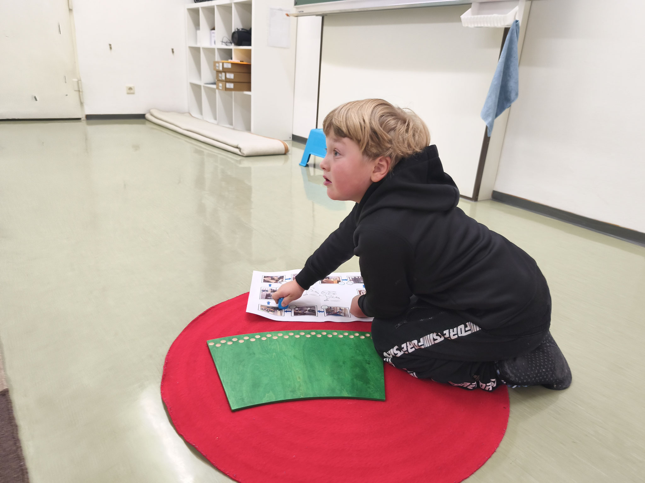 Im Zuge der ersten Nahtstellenbegegnung mit dem Kindergarten durften die acht Schulvorbereitungskinder die Schule bei der Schulhausrallye erkunden. Keine Ecke war bei der Bildersuche vor den neugierigen Kinderaugen sicher.