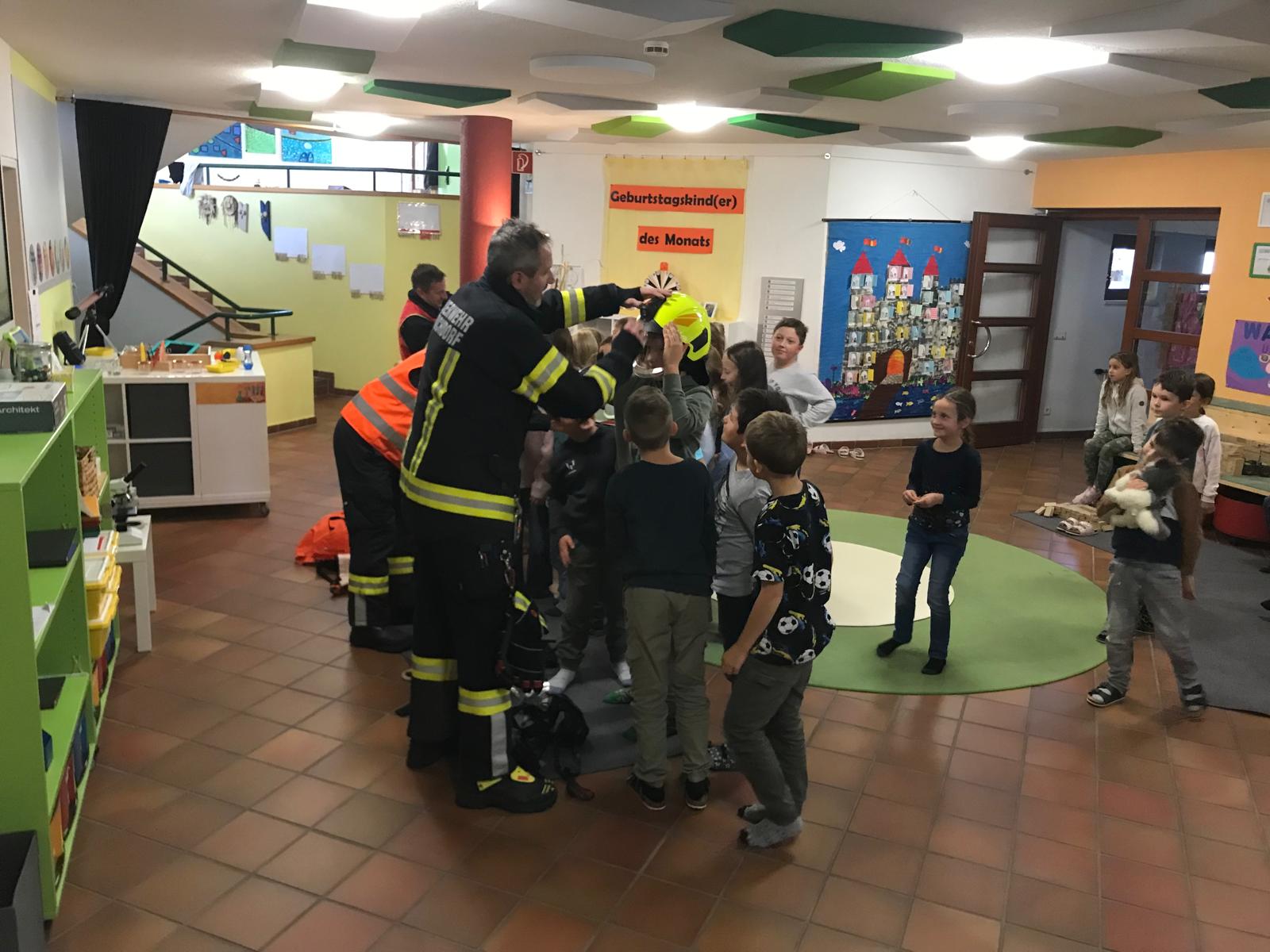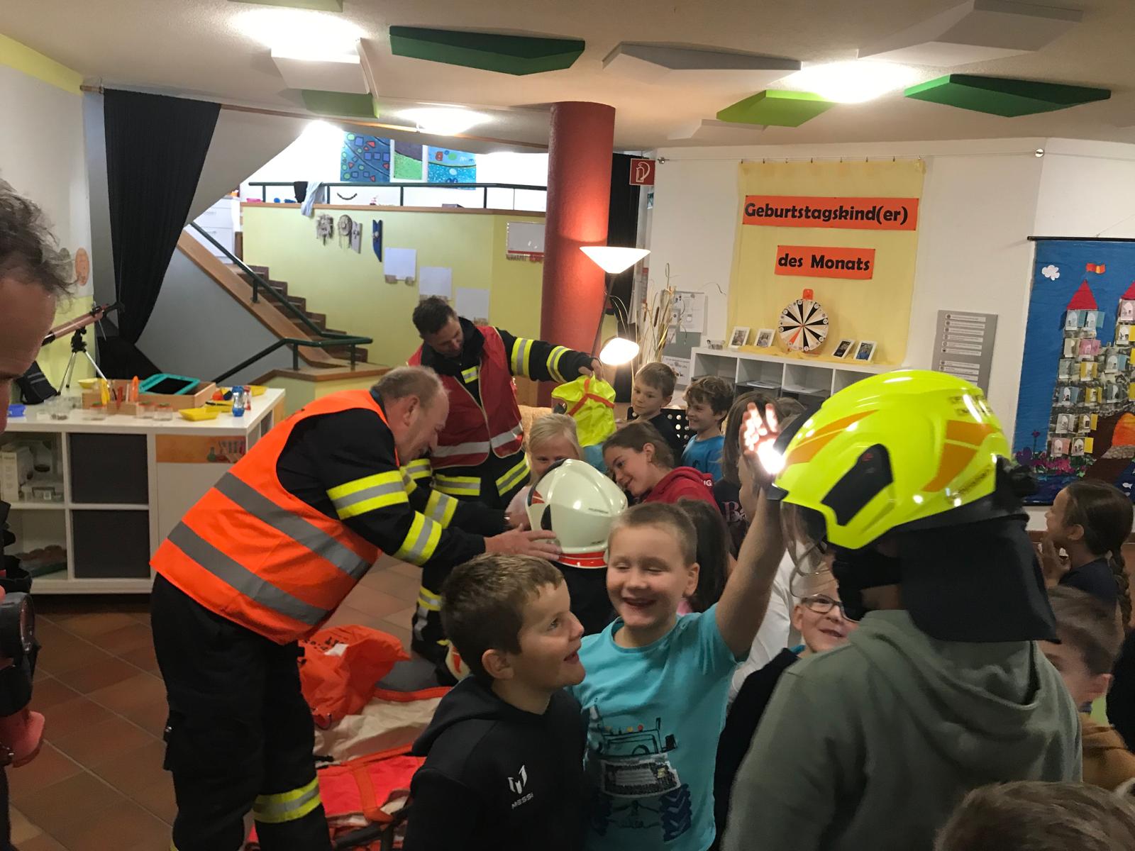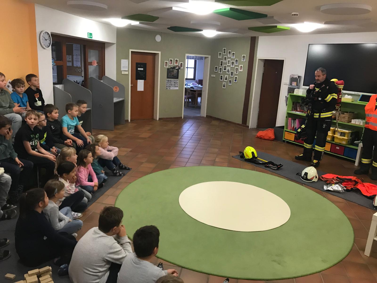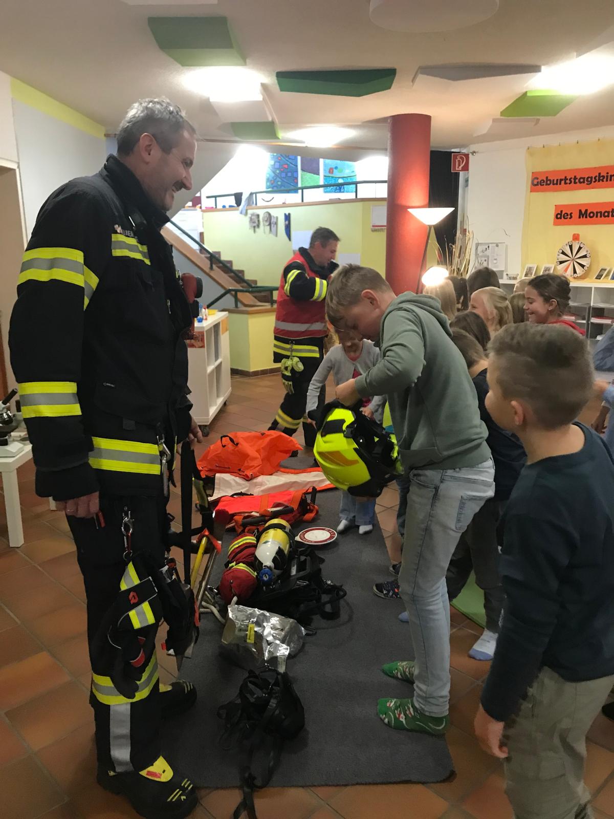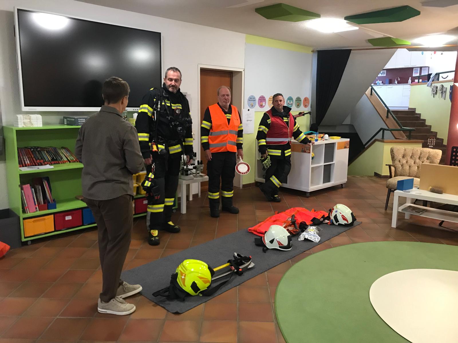 Einen ganz schönen Schreck hat uns das Ertönen der Handsirene eingejagt, als am Donnerstag in der großen Pause das Geheule anfing. Glücklicherweise handelte es sich nur um einen Probealarm. Am nächsten Tag kamen einige Feuerwehrmänner zu uns in die Schule und erklärten und zeigten uns einige wichtige Utensilien für den Brandeinsatz.